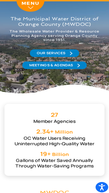 The Municipal Water District of Orange County (MWDOC) is a wholesale water supplier and resource planning agency serving the Orange County area.