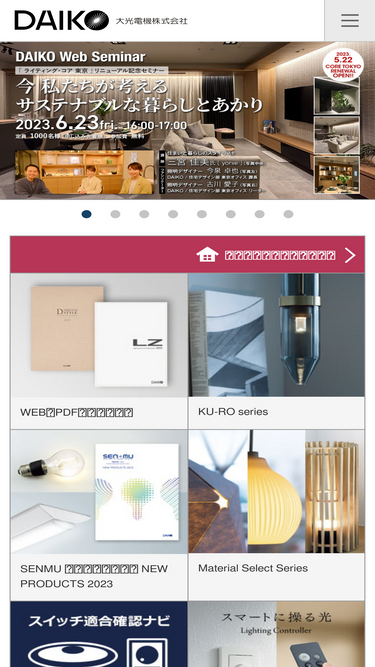 100%led照明のリーディングカンパニー、大光電機の公式サイトトップページです。店舗・施設照明も住宅照明も、daikoにお任せください。新製品情報から、納入事例、お客様サポートコンテンツ、電子カタログ、照明デザイナー集団tactについて、企業情報、採用情報まで、daikoの今をご紹介します。