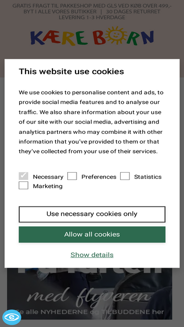 Kære Børn er dit børneunivers fyldt med alt det bedste til dit barn. Fri fragt til pakkeshop ved køb over 499. Køb online / byt i fysisk butik.