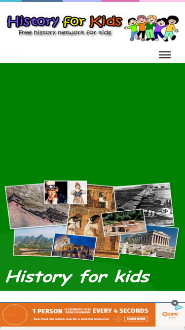 Welcome to History for Kids the free online history network. We hope you enjoy and have fun exploring our history. The website is packed with articles, worksheets and even a quiz on each section. You will find cool games, videos, worksheets on many historical events that will help you understand those that