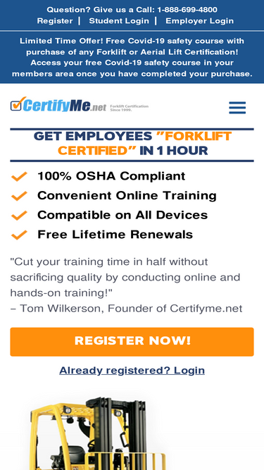 CertifyMe.net’s comprehensive online forklift certification course aligns with OSHA standards, offering participants the ability to get certified in about an hour.