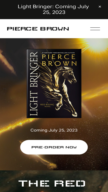 Pierce Brown is the author of the Red Rising Trilogy and a follow-up series to Red Rising. Brown graduated college in 2010, after which he became a manager of social media at a start-up tech company, worked with Disney at ABC Studios, became employed at NBC, and also became an aide on a U.S. Senate campaign,[1] all while trying to make it as an author. In early 2014, his first novel, Red Rising was released to strong positive acclaim. His second novel, Golden Son was released Jan 6th, 2015...