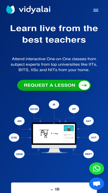 Get your own personal online tutor! Sign up now to learn directly from tutors selected from IITs, BITS, IISC! Improve your score in boards and JEE, NEET, Olympiads, NTSE, KVPY and SAT using our expert tutors!
