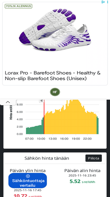 76%Joulukuussa 2024 sähkö oli edullista ja keskihinnaksi muodostui vaivaiset 4,88 snt/kWh. Vuosi takaperin sähkö oli joulukuussa lähes kaksi kertaa kalliimpaa (9,45 snt/kWh). Eteenkin joulukuun loppupuolella sähkö oli edullista johtuen hyvästä tuulivoiman tuotannosta sekä lauhasta säästä. Yösähkön keskihinta oli joulukuussa ainoastaan 2,16 snt/kWh.