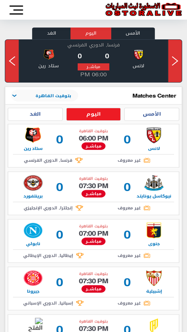 100%روابط الاسطورة لبث المباريات لايف live7hd موقع مهتم بتغطية مباريات اليوم اون لاين live hd7 , يوفر موقع Alostora مشاهدة مباريات اليوم بث مباشر livehd7 للجوال