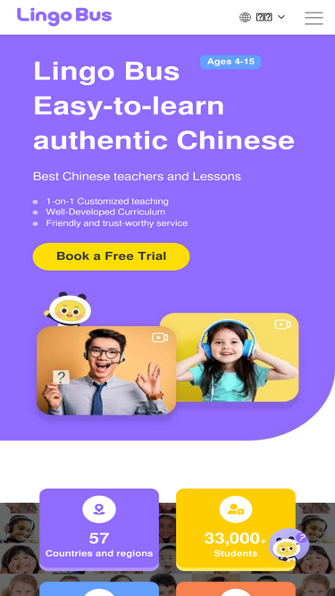 73%Chinese learning courses for kids from 4 to 15 years old. Lingo Bus is an online Mandarin learning platform consisting of professional Chinese teachers.
