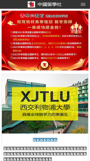 中國留學社是最早成立的中國留學資訊網站之一,我們成立的目標是為外國及港澳台學生提供前往中國留學正確的方向,讓大家透過我們網站隨時隨地取得中國留學相關之資訊,包括中國教育、大學排名、港澳台聯招考試、免試招收香港及台灣學生方法等資料。