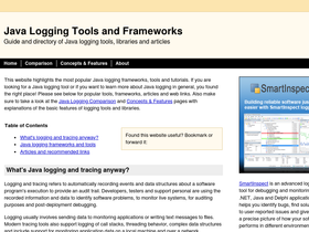 guide and directory to java logging frameworks, libraries and articles with links to popular logging tools, websites and tutorials including log4j, slf4j, smartinspect and more