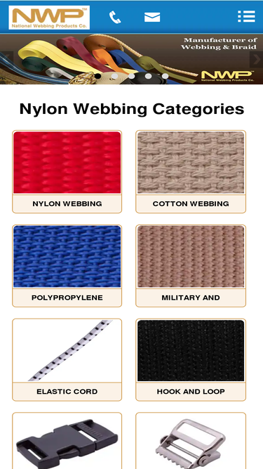 75%national webbing products co. is the prime manufacturer of cotton webbing, nylon webbing, poly webbing, webbing straps and metal hardware in the u.s.