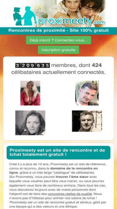 célibataires, rencontrez l'âme sœur gratuitement sur proximeety ! notre site de rencontre est à 100% gratuit. chat, messagerie, tout le confort d'un site payant avec l'avantage de la gratuité.