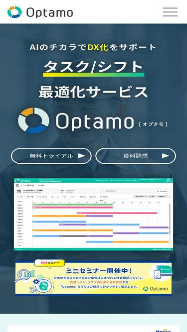 76%工場、物流、コールセンター、飲食・小売など、さまざまな業種のシフト管理に関わる負担を大幅に軽減し、DX化を支援します。