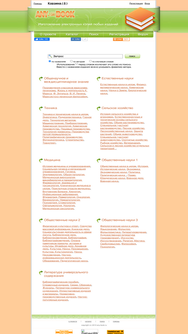 92%any-book.ru - библиографический каталог, который включает в себя более 3 миллионов книг, около 500 тысяч авторов и самый быстрый поиск!