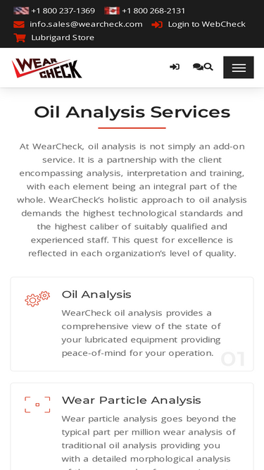 Quality assurance is the primary governing aspect of your business. When safety is paramount to your daily operation a condition monitoring program is an inherent part of your procedures.Oil and wear particle analysis is the most widely accepted method of condition monitoring, in use today, for aviation systems.It is no wonder why most OEMs recommend, or insist, upon some form of oil and wear particle analysis.Oil and wear particle analysis is a combination of spectrometric, ferrographic, and filter analysis.When used as part of your quality assurance program, oil and wear particle analysis will detect abnormal wear modes in aviation systems, long before the wear can lead to any serious damage.WearCheck's analysis will indicate when components are near failure.This gives you time to plan maintenance.Worn components can be replaced at your local facility avoiding rental, and shipping charges.In flight shutdowns, as a result of failed critical components, are avoided, as WearCheck's analysis pinpoints the wear signatures of rolling element bearings, gears, splines, and other critical components.WearCheck's filter and ferrographic analysis utilizes the morphology of wear particles to detect specific wear modes.Avoid installation errors, and rapid failures, when analysis detects cutting wear from misaligned components.WearCheck's oil and wear particle analysis will allow you to realize a reduction in the cost of equipment maintenance, and an increase in aircraft availability and reliability.WearCheck's oil and wear particle analysis is effectively used today for a broad range of aviation systems including jet turbine and turbo props, reciprocating engines, helicopter rotors, gearboxes and transmissions and aircraft hydraulic systems.Contact a WearCheck technical representative to recommend the proper testing package for you application.WearCheck offers a comprehensive selection of oil and wear particle test kits to cover your specific needs.