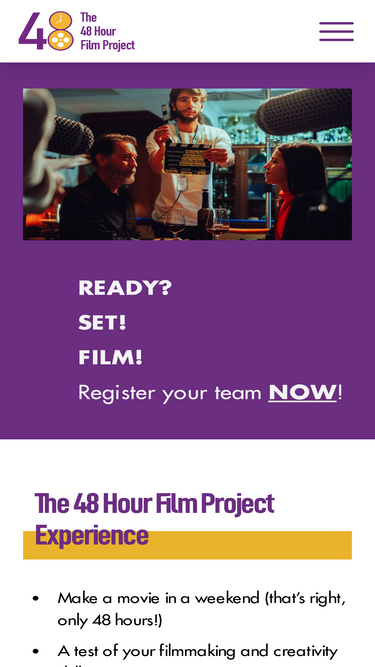 a wild and sleepless yet creative competition weekend, in which teams compete to make the best short fiction film in 48 hours, using a genre, prop, character and line as required elements. then see it premiered in the local cinema.