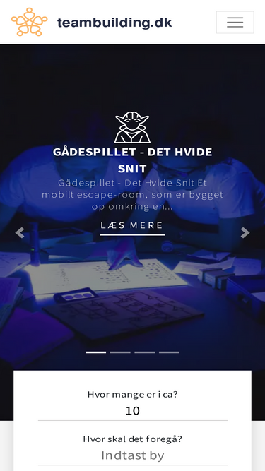 Dit overblik over teambuilding aktiviteter, bl.a. gps teambuilding, kokkeskoler, bueskydning, fårehyrdning, div. fyraftensarrangementer og icebreakers