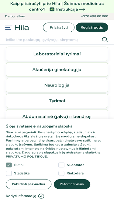 Kontaktinė informacija apie „InMedica“ klinikas, leidžianti lengvai susisiekti dėl konsultacijų, klausimų ar informacijos apie teikiamas paslaugas.