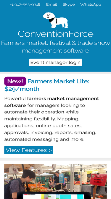 Farmers market, trade show and outdoor festival market software. Software for event managers who sell booths. Vendor registration software, floor plan layouts, online payments.