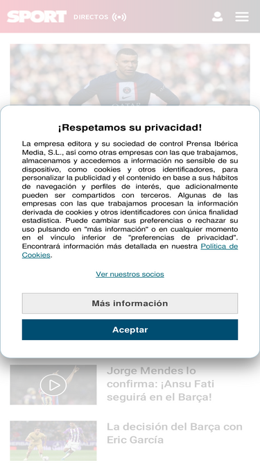 97%Las noticias del FC Barcelona y del deporte hoy en MD: resultados de fútbol, partidos en directo, Real Madrid, Fórmula 1, motogp, Cristiano, Messi y más.