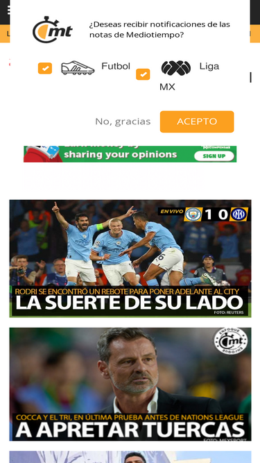 Información deportiva: Partidos al momento, resultados de la Liga MX, futbol internacional y Selección Mexicana, además de la NFL, NBA, béisbol, lucha libre y más.