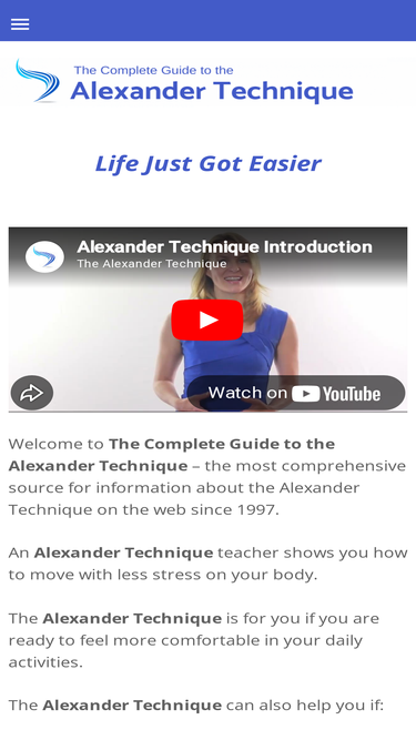 Learn about Alexander Technique Students’ experiences with the Technique on this page. You can find their stories shared in: Audio interviews Videos A Book Articles. Alexander Technique Audio Three audio interviews with students of the Alexander Technique about their experiences … Continue reading →