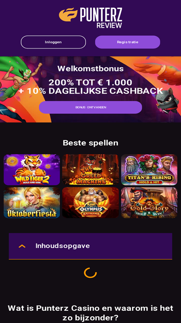Speel bij Casino Punterz met duizenden slots, live tafels en sportweddenschappen. 200% tot €1000, snelle uitbetalingen en 24/7 NL support