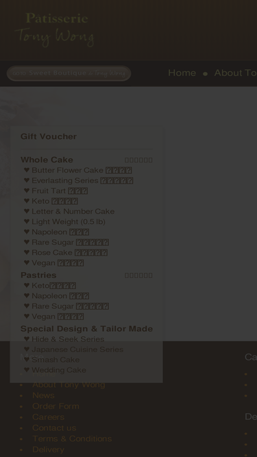 Terms and ConditionsWelcome to www.Patisserietonywong.com (“Site”), the website of Bonne Journee Company Limited. The terms and conditions hereunder (“Terms and Conditions”) govern your purchase of goods and/or services from Bonne Journee Company Limited. By using this Site, you AGREE to be bound by the Terms and Conditions, our privacy policies (“Privacy Policy”) and all disclaimers and terms and conditions that appear elsewhere on this Site.No user of this Site is permitted to tamper with the Site, misrepresent his identity, use buying agent or conduct any fraudulent or illegal activity on the Site. These Terms and Conditions also apply to any order placed via telephone, facsimile and at all the shops of Patisserie Tony Wong.We reserve the right to update and amend the Terms and Conditions and Privacy Policy at any time at our absolute discretion without notice. You are advised to visit the Site regularly to see if the Terms and Conditions and Privacy Policy have been revised. In using the Site, you are deemed to have read through and accepted any change to the Terms and Conditions and (as the case may be) Privacy Policy. General Terms of UseNo variation of these Terms and Conditions shall be effective unless we expressly agreed in writing.Access to the Site is provided on “as-is” basis and according to its availability. We provide no guarantee and the Site is used at the user’s risk.In your use of the Site, you agree to provide information about yourself that is not misleading but true, accurate, current, and complete in all respects. Please refer to our Privacy Policy for more information on how we use your personal data. We shall be entitled to refuse to allow you to use the Site or its services at any time.You agree to provide complete and updated information to place orders on this Site. By placing an order using any credit card or any payment method acceptable to us, you confirm that the credit card or payment method used is legal and the credit card is y