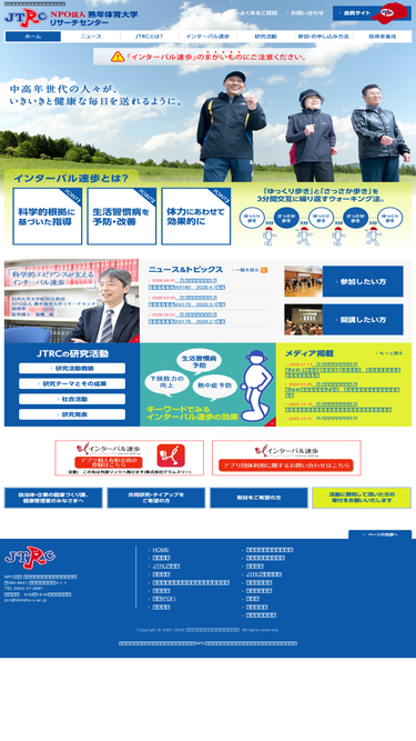 熟年体育大学リサーチセンター(jtrc)は、中高年世代の人々が、いきいきと健康な毎日を送れるように、科学的根拠に基づいた健康増進事業を推進しています。