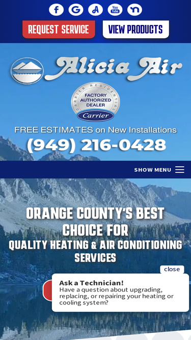 Alicia Air - AC/air conditioner and heater/furnace sales, repairs, service, installation and maintenance. Residential and commercial HVAC contractor serving Orange County since 1980. Carrier dealer.