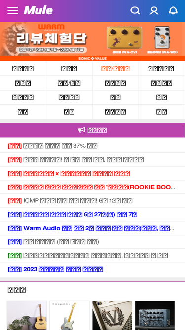 뮤지션의 자유공간 뮬은 중고악기, 악기사용기, 합주실, 연습실, 구인구직등 뮤지션에게 필수적인 정보를 제공하고 있습니다