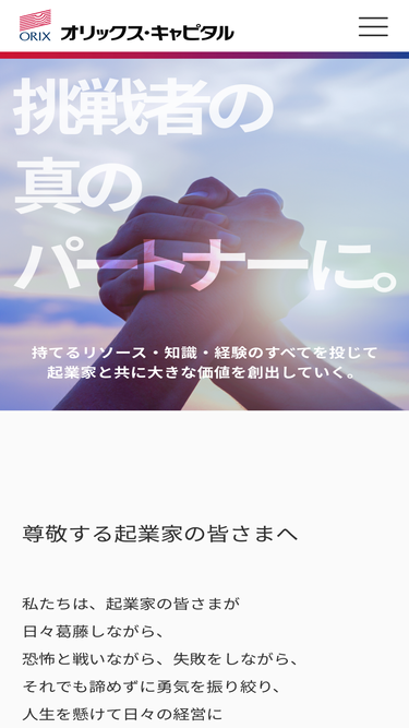 「挑戦者の真のパートナーに。」 持てるリソース・知識・経験のすべてを投じて 起業家と共に大きな価値と勝ちを創出していく。
