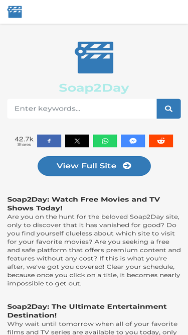 100%The official SOAP2DAY website. Watch free movies and TV series online with SOAP2DAY; no need to use soapgate.org or soap2day.to. Try it now for free—no registration needed!