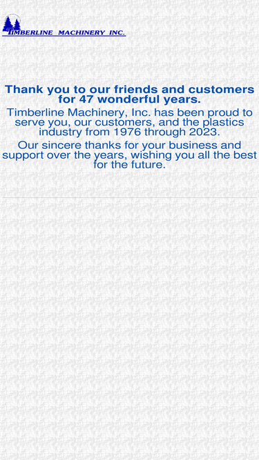 timberline machinery, inc. - one of the largest stocking dealers of used plastic machinery in the usa, including injection molding machines, blow molding machines, and extrusion machinery. we pay cash for complete plants and have been selling quality plastics machinery worldwide for over 20 years.