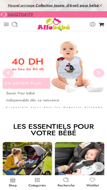 Diapositive précédente Diapositive suivante Conseil Personnalisé 6 jours /7 Livraison Gratuite à partir de 400 dh partout au Maroc. Visitez nos magasins Casablanca – Rabat – Sale – Temara Paiement Sécurisé Par Carte ou à la Livraison Contactez-nous tel: 0602202155 Catégories Allaitement Baignoire et table à langer Hygiène bebe Robot cuiseur mixeur Sommeil Transat et...