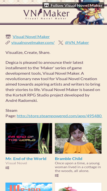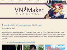 KOMODO is pleased to announce their latest installment to the 'Maker' series of game development tools, Visual Novel Maker: a revolutionary new tool for Visual Novel Creation aimed towards aspiring artists and writers to bring their stories to life. Visual Novel Maker is developed by André Radomski.