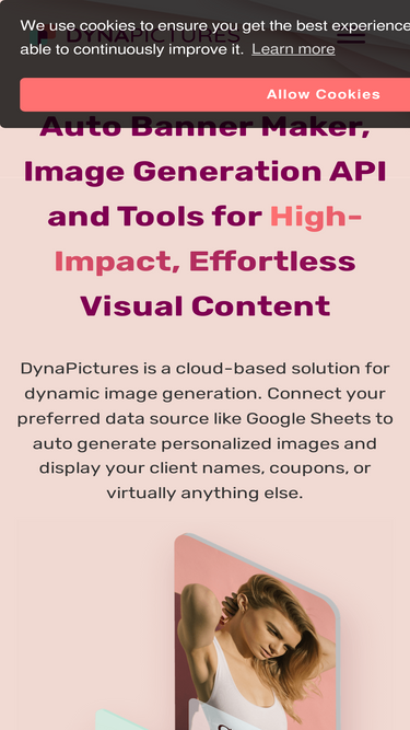 82%Use our API to auto-generate banners, e-commerce, and social media images in bulk. Modify any object, from text to image. Start with image generation API for free.