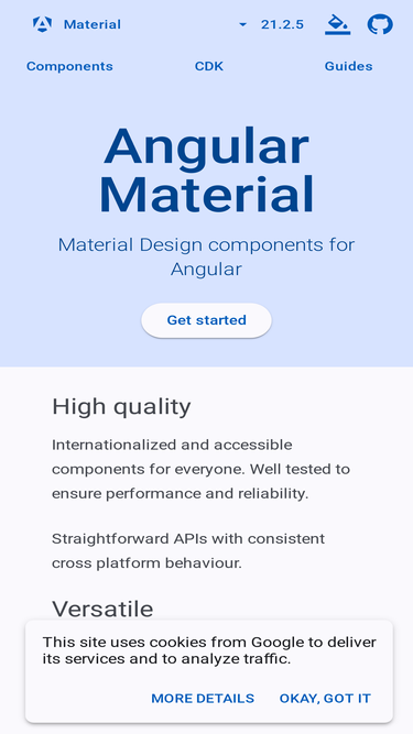 UI component infrastructure and Material Design components for Angular web applications.
