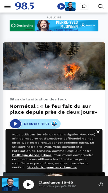 81%Avec sa formule entièrement parlée, le 98.5 Montréal interpelle ses auditeurs par la diversité et l'actualité des sujets traités ainsi que la qualité des analyses et des entrevues menées.