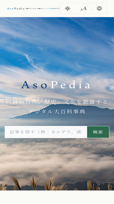 阿蘇カルデラの成り立ちから現在の観光情報まで、阿蘇の魅力を網羅したデジタルアーカイブです。