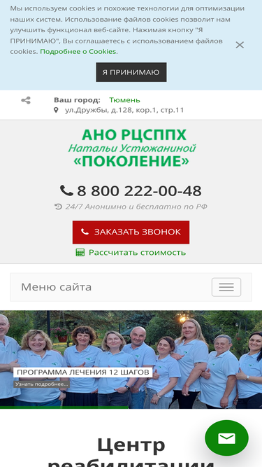 тюменский реабилитационный центр натальи устюжаниной «поколение» поможет вернуться наркоманам и алкоголикам, к полноценной жизни в обществе. бесплатная горячая линия ☎ 8 800 222-00-48