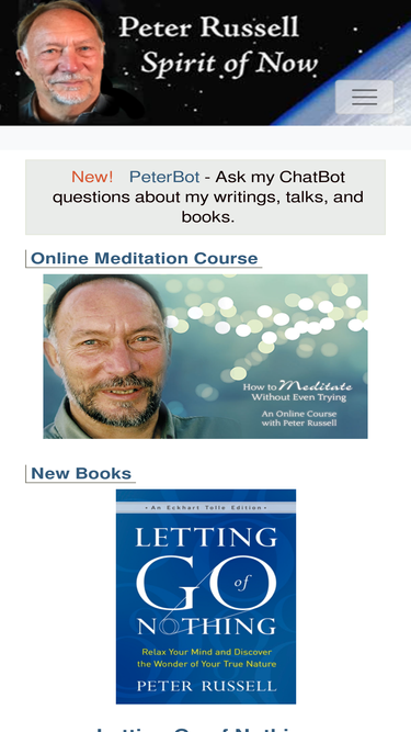 peter russell 's site, the spirit of now, on science, consciousness, spiritual wisdom, global brain, meditations, nature of reality.