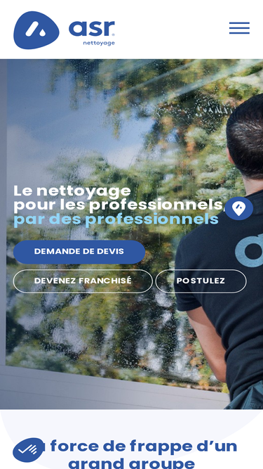 100%asr nettoyage est une franchise de nettoyage nationale, spécialisée dans la vitrerie, le nettoyage des sols et l'entretien des sanitaires. nos équipes s'engagent à offrir des services de qualité supérieure pour garantir des espaces impeccables et la satisfaction de nos clients. découvrez nos solutions de nettoyage adaptées à vos besoins professionnels.