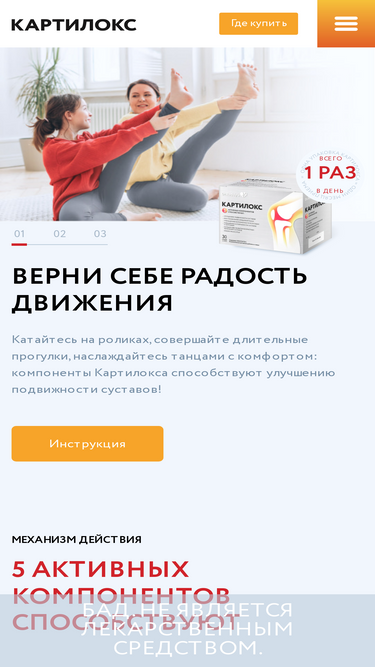 73%Картилокс – биологически активная добавка для поддержания здоровья суставов. ✔️️️️ 5 активных компонентов способствуют улучшению подвижности суставов, восстановлению, уменьшению болезненности. ✔️️️️️ Все подробности читайте на сайте.