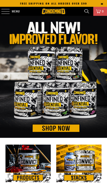 Condemned; defying the industry standard with aggressively formulated, quality supplements. Proudly made in the U.S.A, our products deliver results to everyone from the everyday fitness enthusiast to the advanced athlete. Build muscle, get stronger and recover faster.