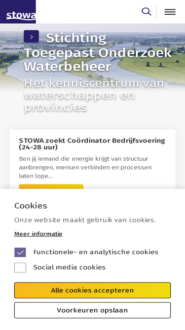STOWA is het kenniscentrum van de regionale waterbeheerders (veelal de waterschappen) in Nederland. STOWA ontwikkelt, vergaart, verspreidt en implementeert toegepaste kennis die de waterbeheerders nodig hebben om de opgaven waar zij in hun werk voor staan, goed uit te voeren. Deze kennis kan liggen op toegepast technisch, natuurwetenschappelijk, bestuurlijk-juridisch of sociaalwetenschappelijk gebied.