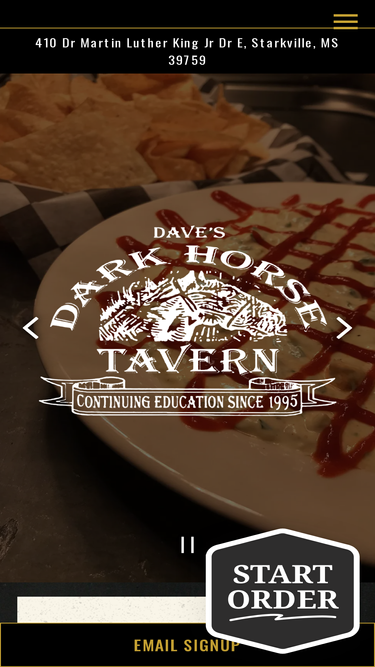 Visit Dave's Dark Horse Tavern in Starkville, MS at 410 Dr Martin Luther King Jr Dr. Open Tuesday - Wednesday: 4:00 pm - midnight, Thursday - Friday: 4:00 pm - 1:00 am, and Saturday & Sunday: open at 11:30am.