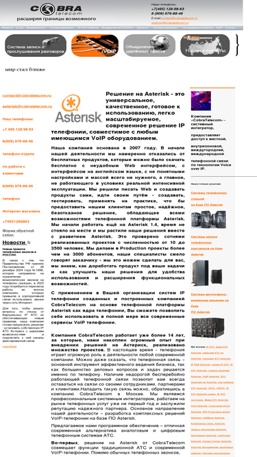 компания cobratelecom в москве является профессиональным системным интегратором, работающим на рынке телефонных услуг уже не первый год и имеющим репутацию надежного партнера. основное направление нашей деятельности – разработка комплексных решений voip-телефонии на базе по asterisk.