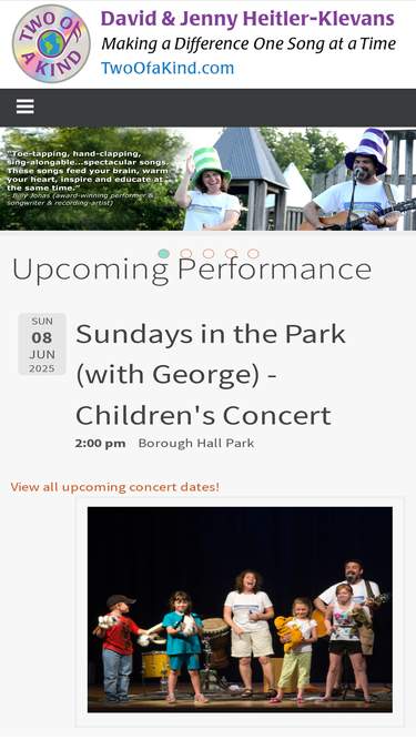 Two of a Kind produce high-quality educational meaningful children's music CDs for the whole family. Award-winning music and interactive performances!