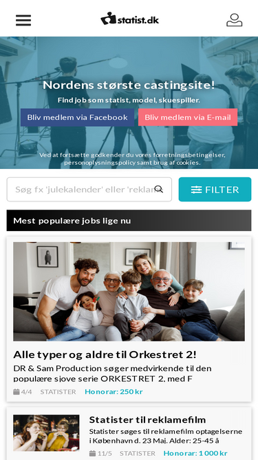 statist.dk - nordens største castingsite! hos os finder du jobs som statist, model, danser, skuespiller, entertainer og tv-publikum. vær med i borger, forbrydelsen, rita, broen, reklamefilm og musikvideoer.