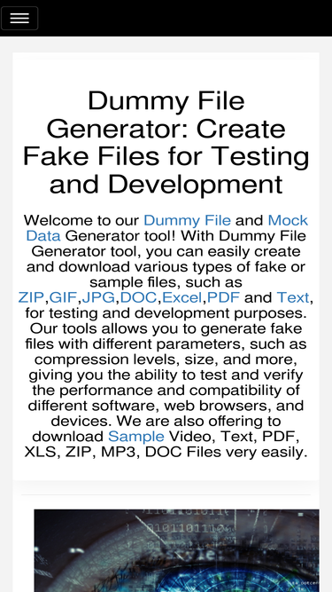 create dummy test data files with our fake file generation tool.quickly create a huge number of dummy files like zip, image, mp3, doc, excel, pdf and text.