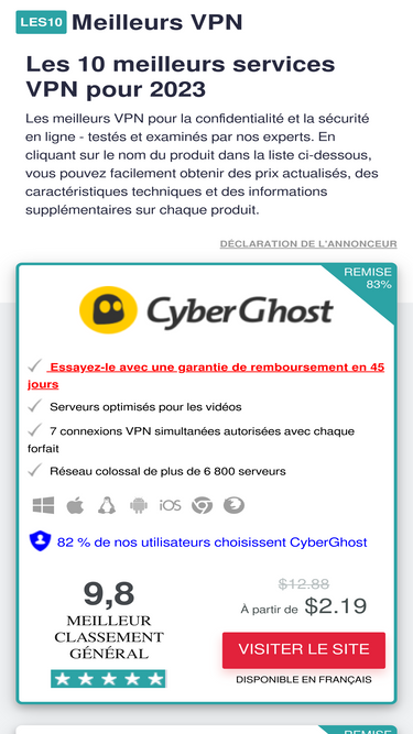 L’un des meilleurs services VPN tout-en-un. Ultra rapide et sécurisé, avec plus de 3000 emplacements de serveurs dans plus de 90 pays. Dire que nous recommandons ExpressVPN serait un euphémisme...